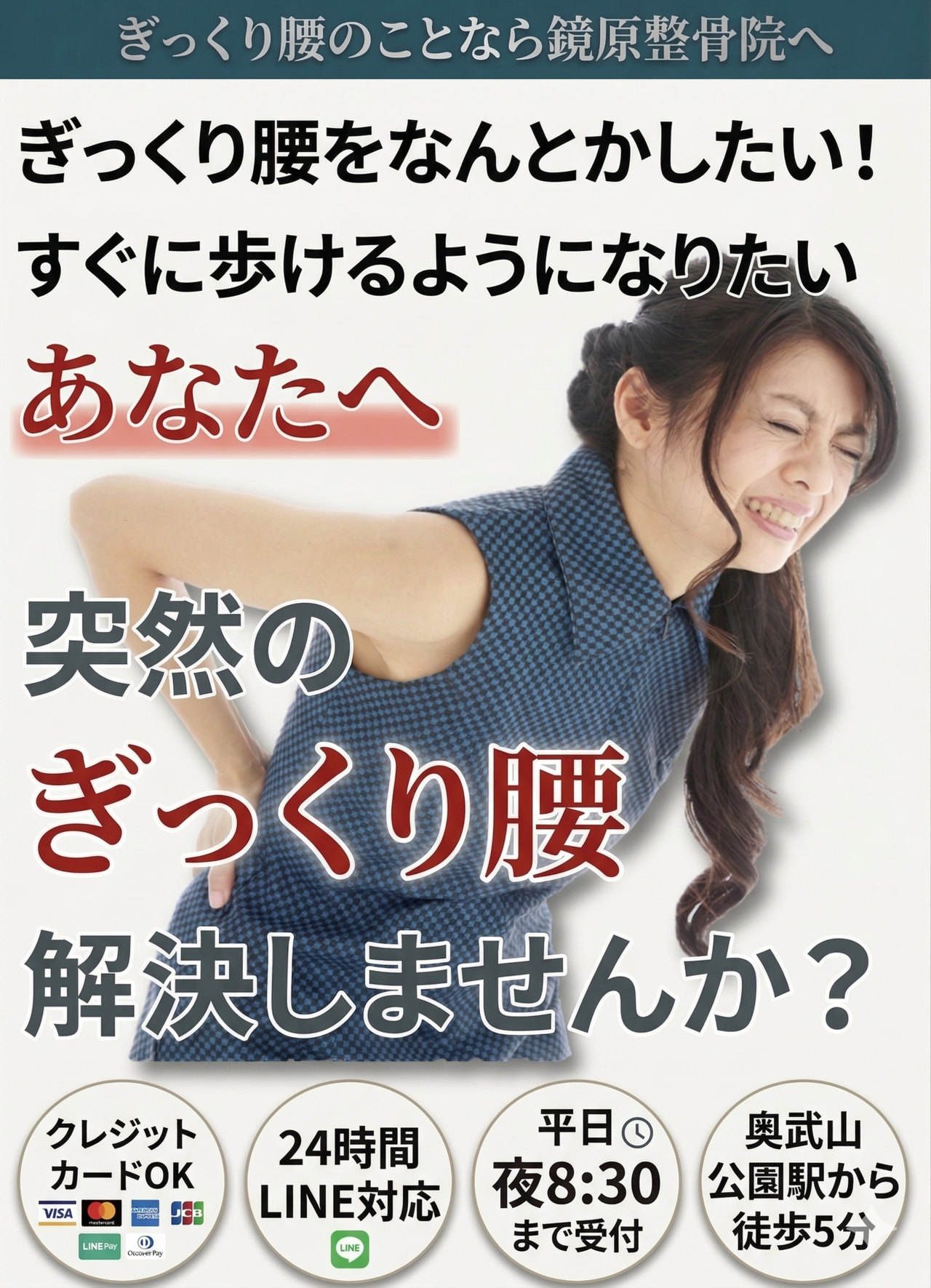お電話の場合:「ぎっくり腰施術希望」とおっしゃってください。